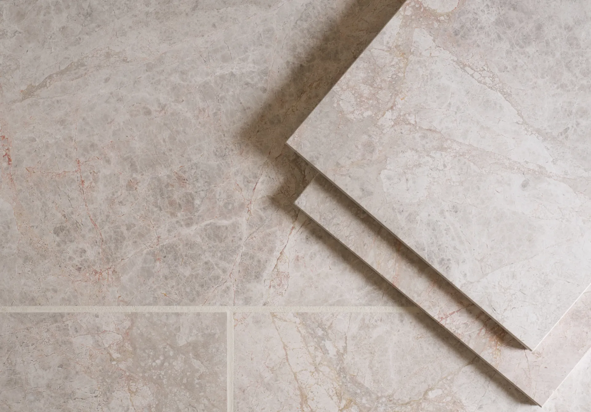Tiles have a very light silver to grey background with darker quartz veining.