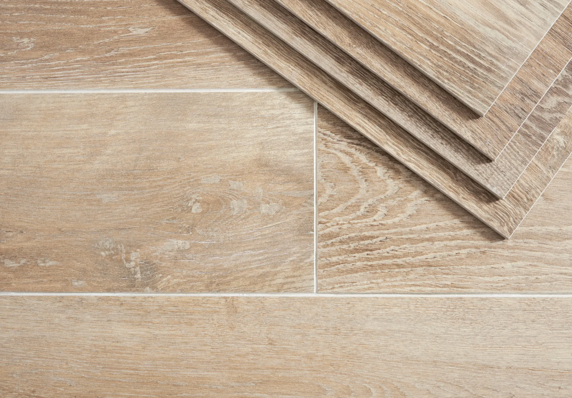 A beautiful wood effect porcelain with soft fawn and light tan undertones. Blonde, ash grey, and dark brown knot and grain detail make this porcelain hard to distinguish from real wood.