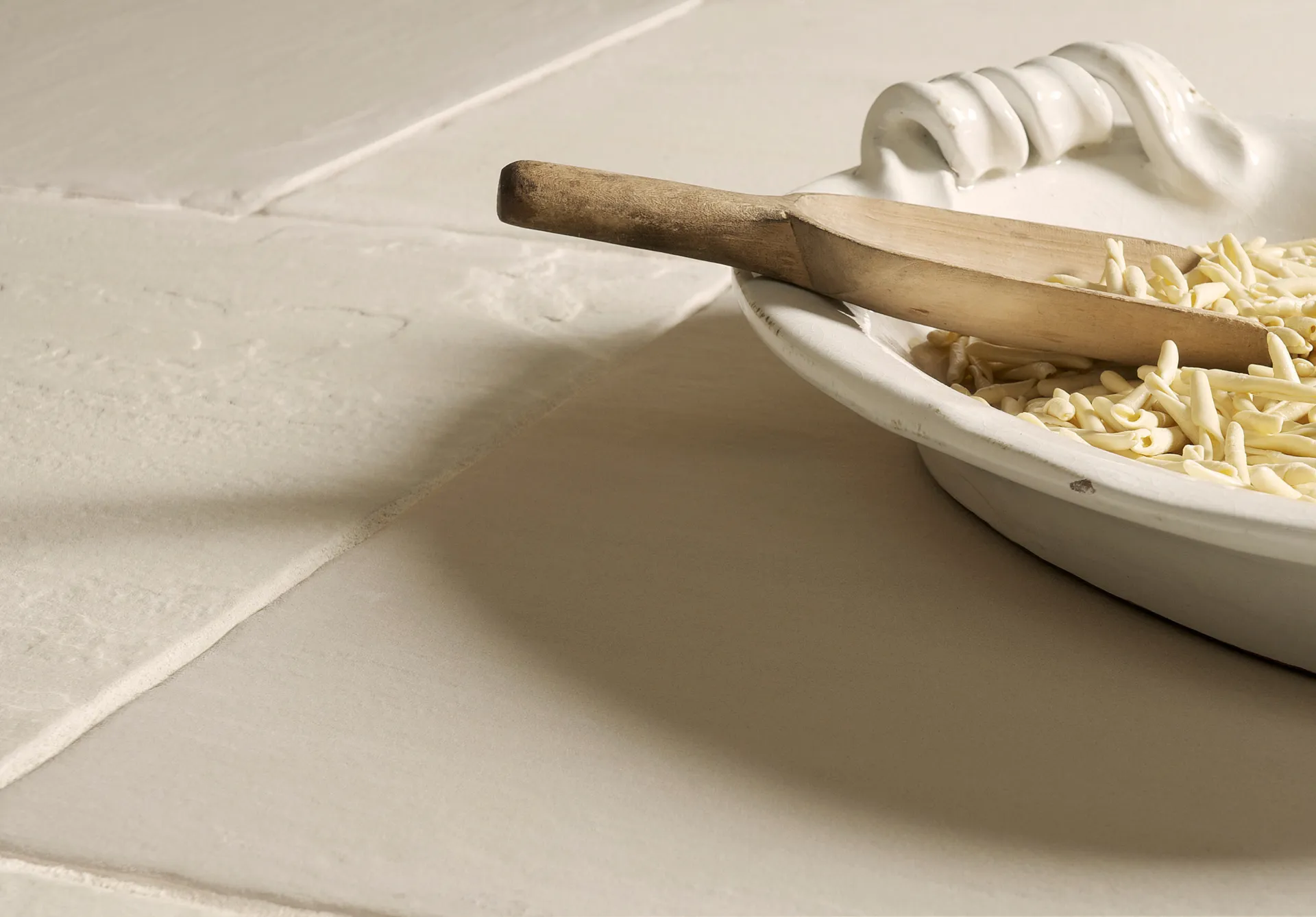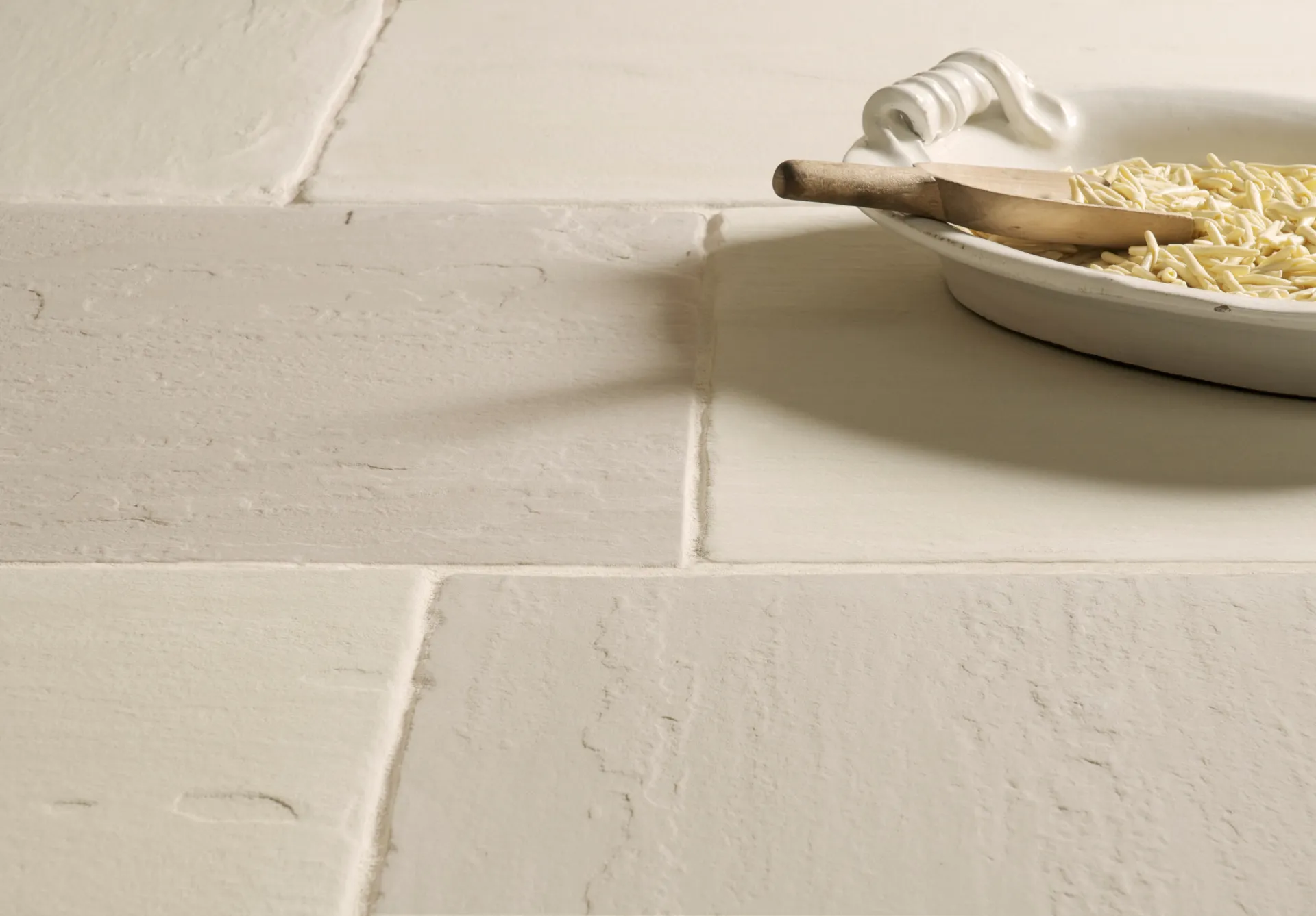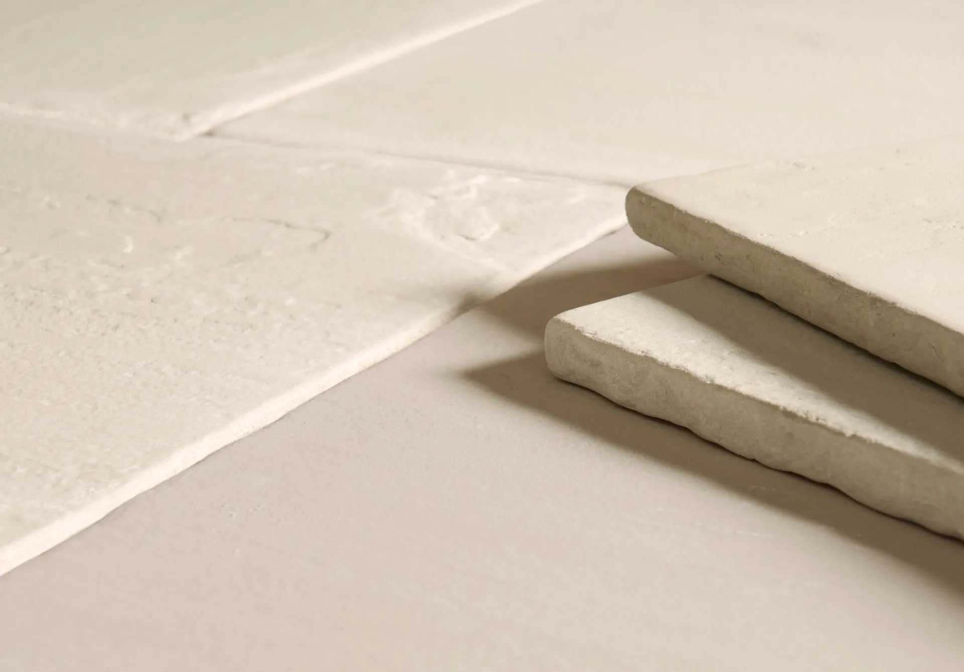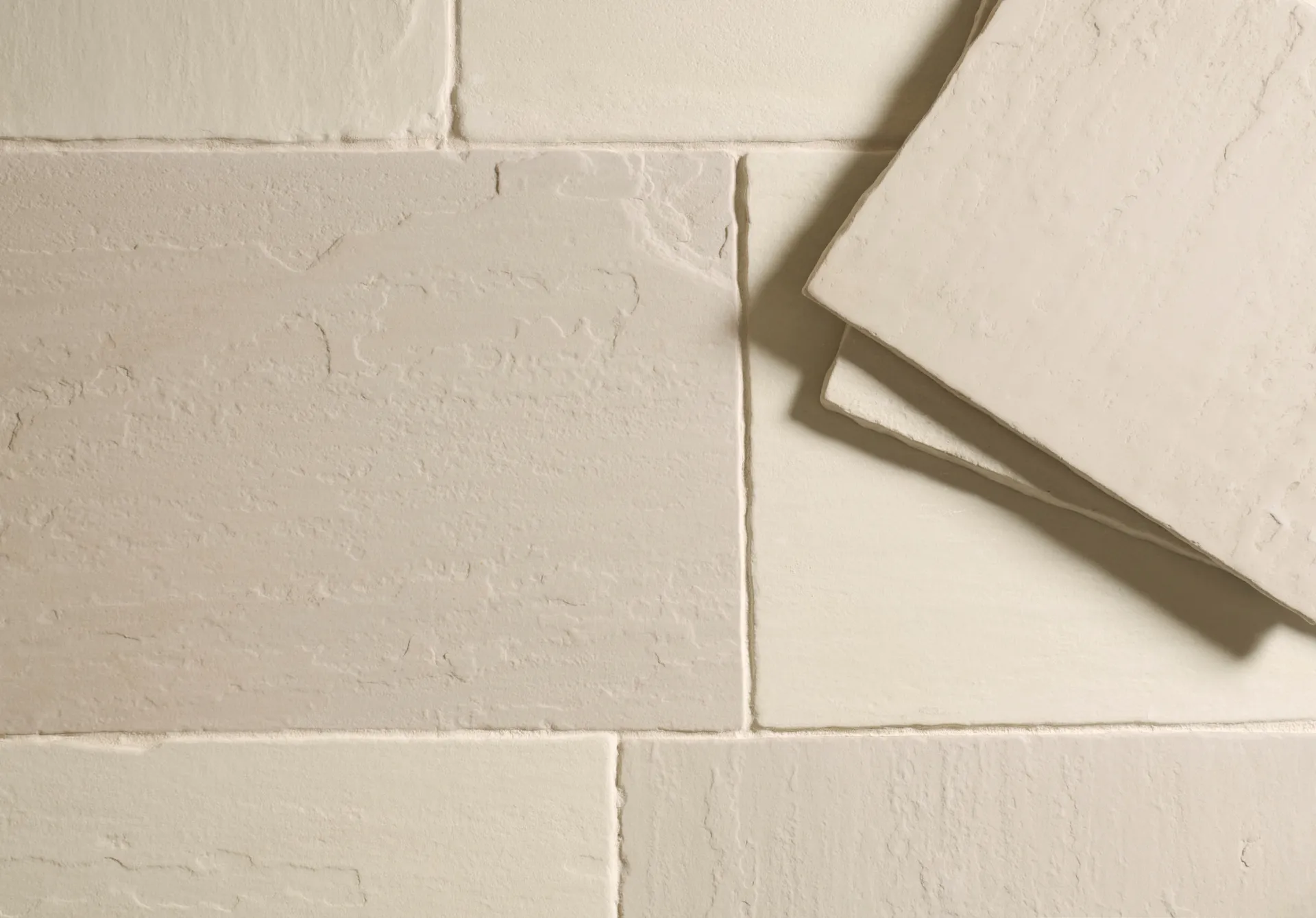An Ivory coloured sandstone with tumbled edges and a beautifully textured surface.