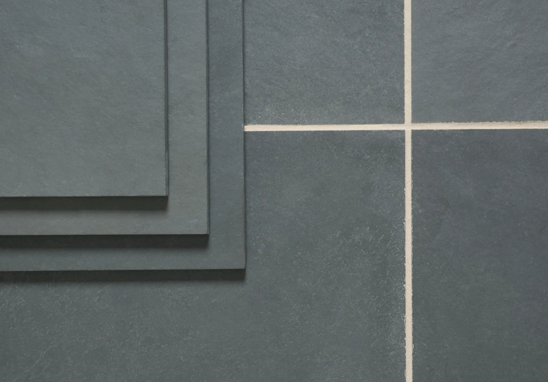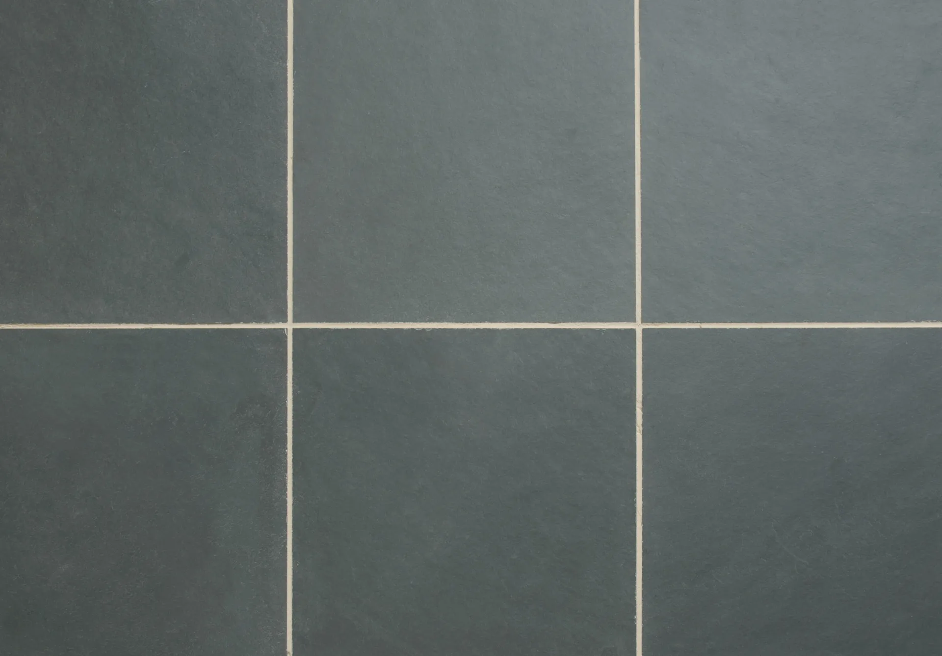 Consistent, even black/grey slate with a green hue. Lightly riven surface with minimal texture.