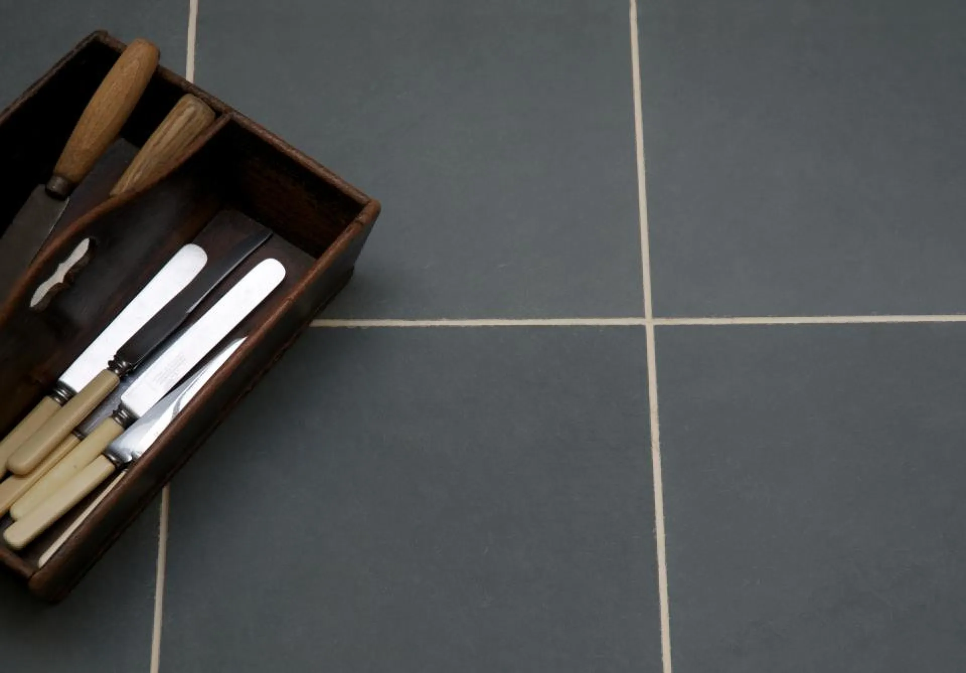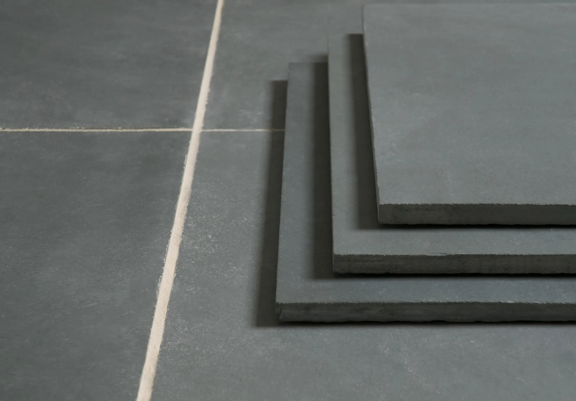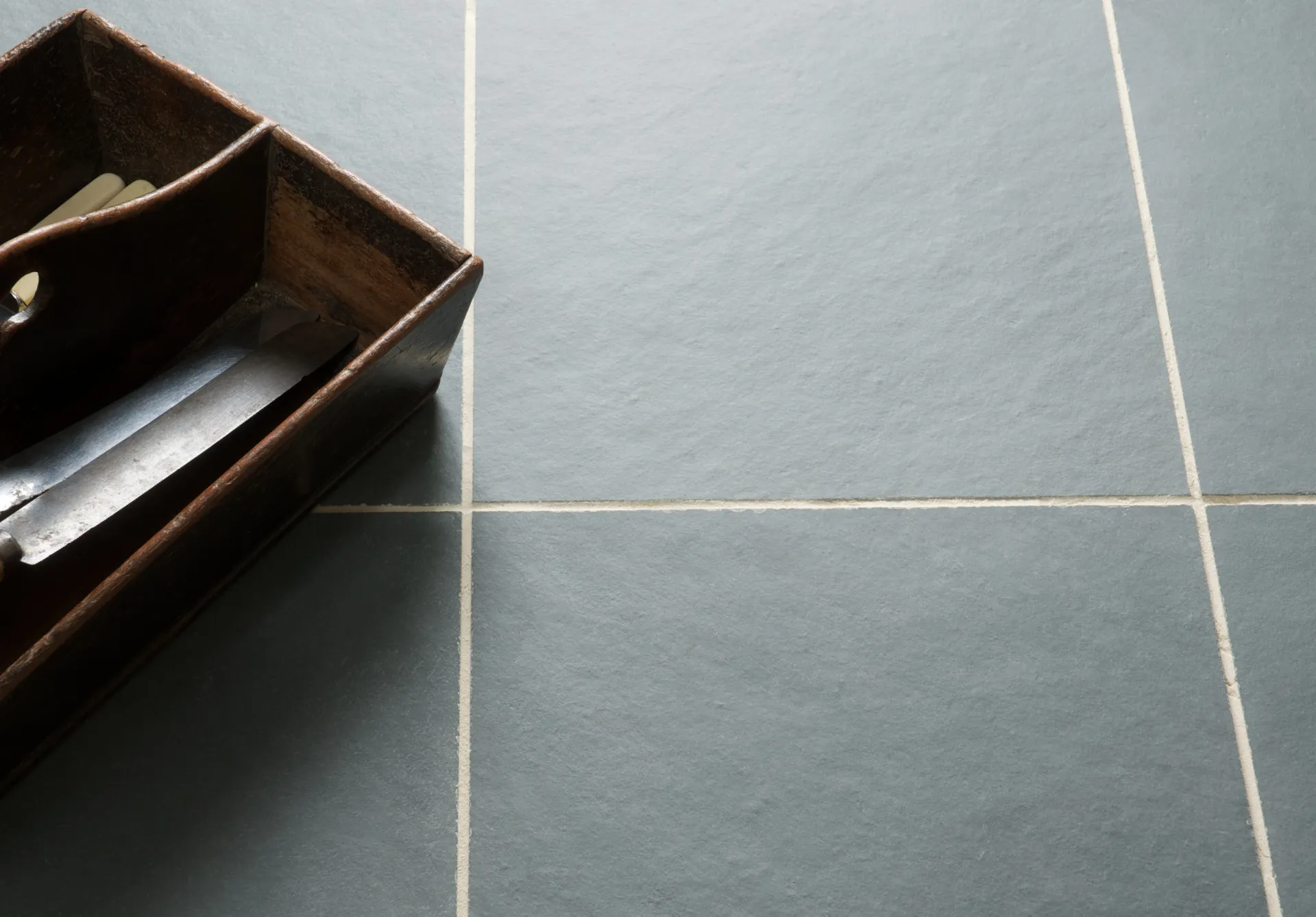The Brazilian Green Slate is a consistent charcoal grey colour with green undertones. The tiles have been calibrated for a practical finish, with some light layering evident on the surface, leaving no doubt this is a natural stone. The tiles have a neat square edge, which lends them to a more contemporary setting, and are commonly used in kitchens, utilities and bathrooms. The slate can be laid with dark grout, for a more continuous, consistent look, or with a contrasting light grout to make more of a feature of the floor.