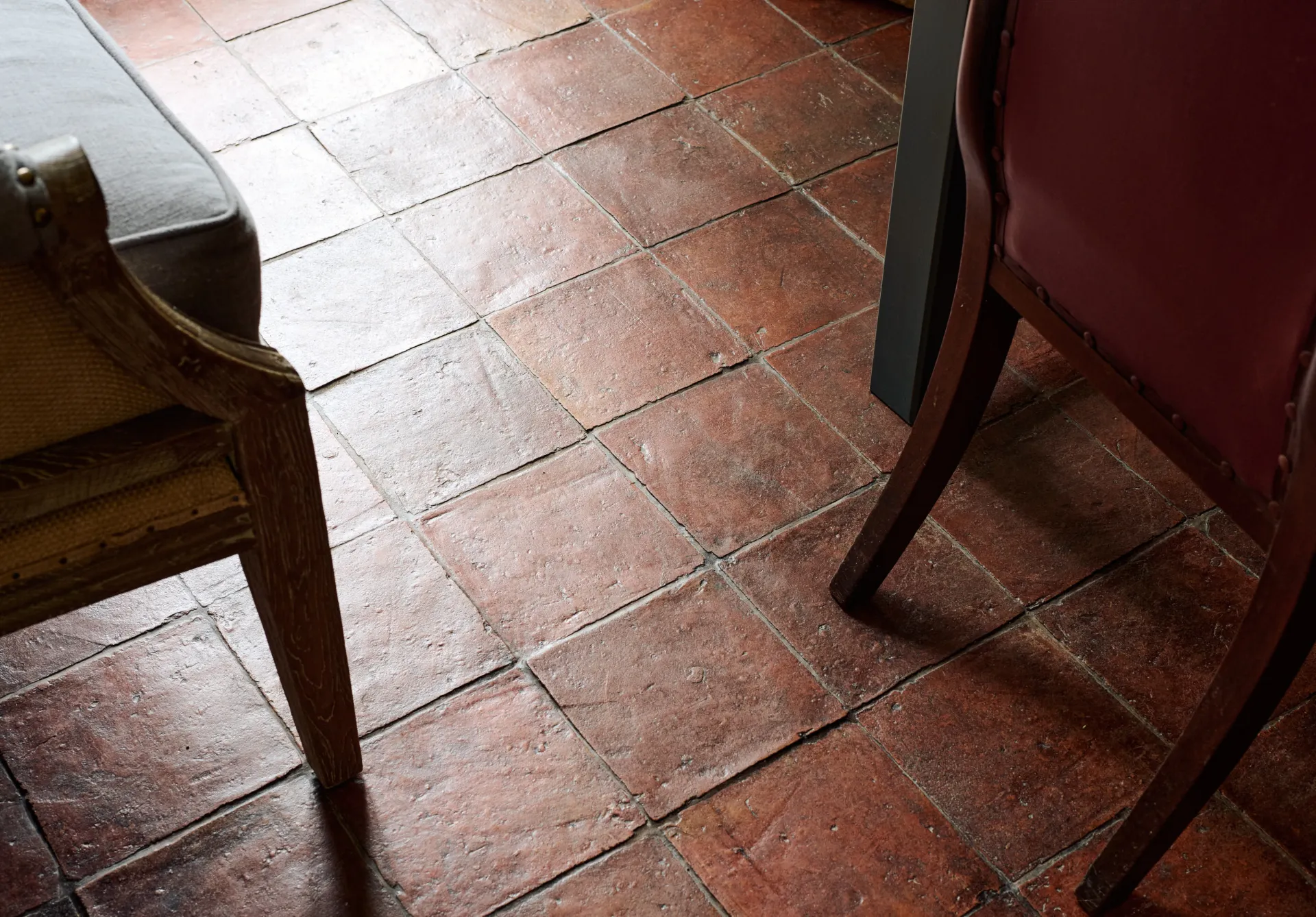 Rustic, handmade terracotta. The tiles have deep to light red tones, and hand finished edges to give the worn appearance of an original terracotta floor. The tiles arrive unsealed allowing you to finish and achieve the desired effect. Sizes stated are nominal and imprecise and imperfections to the surface and edge are to be expected.