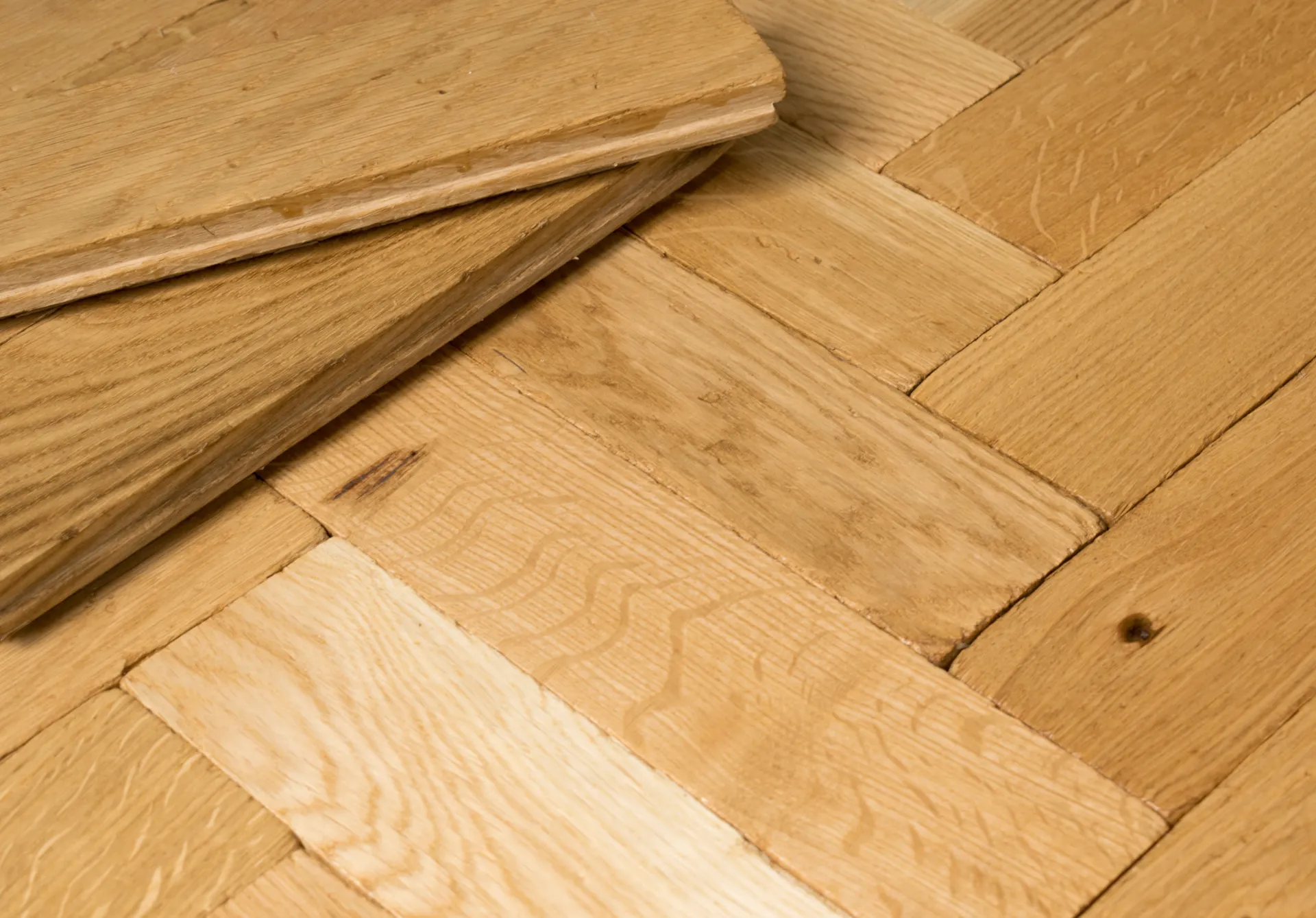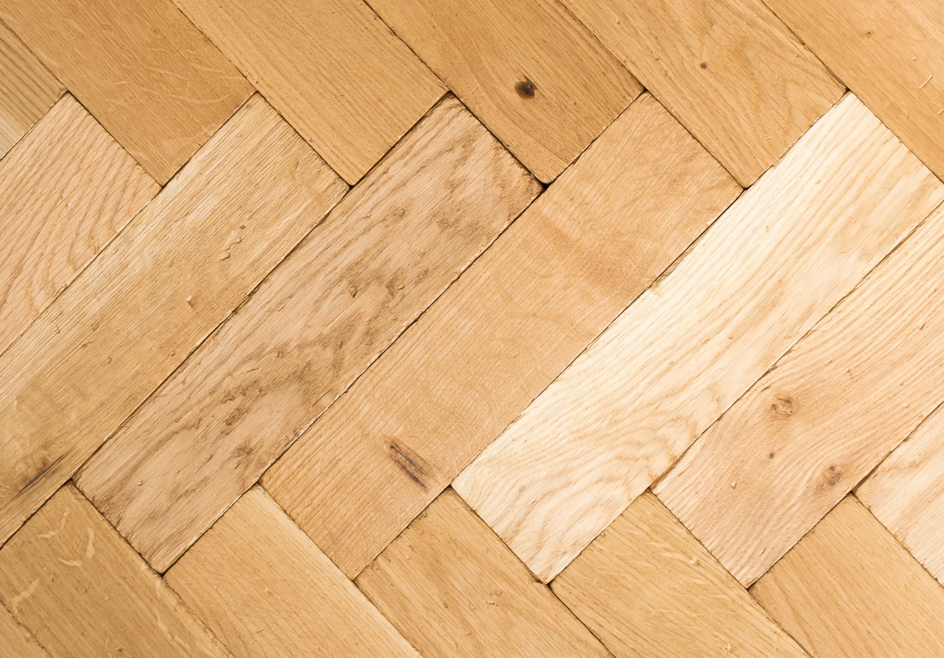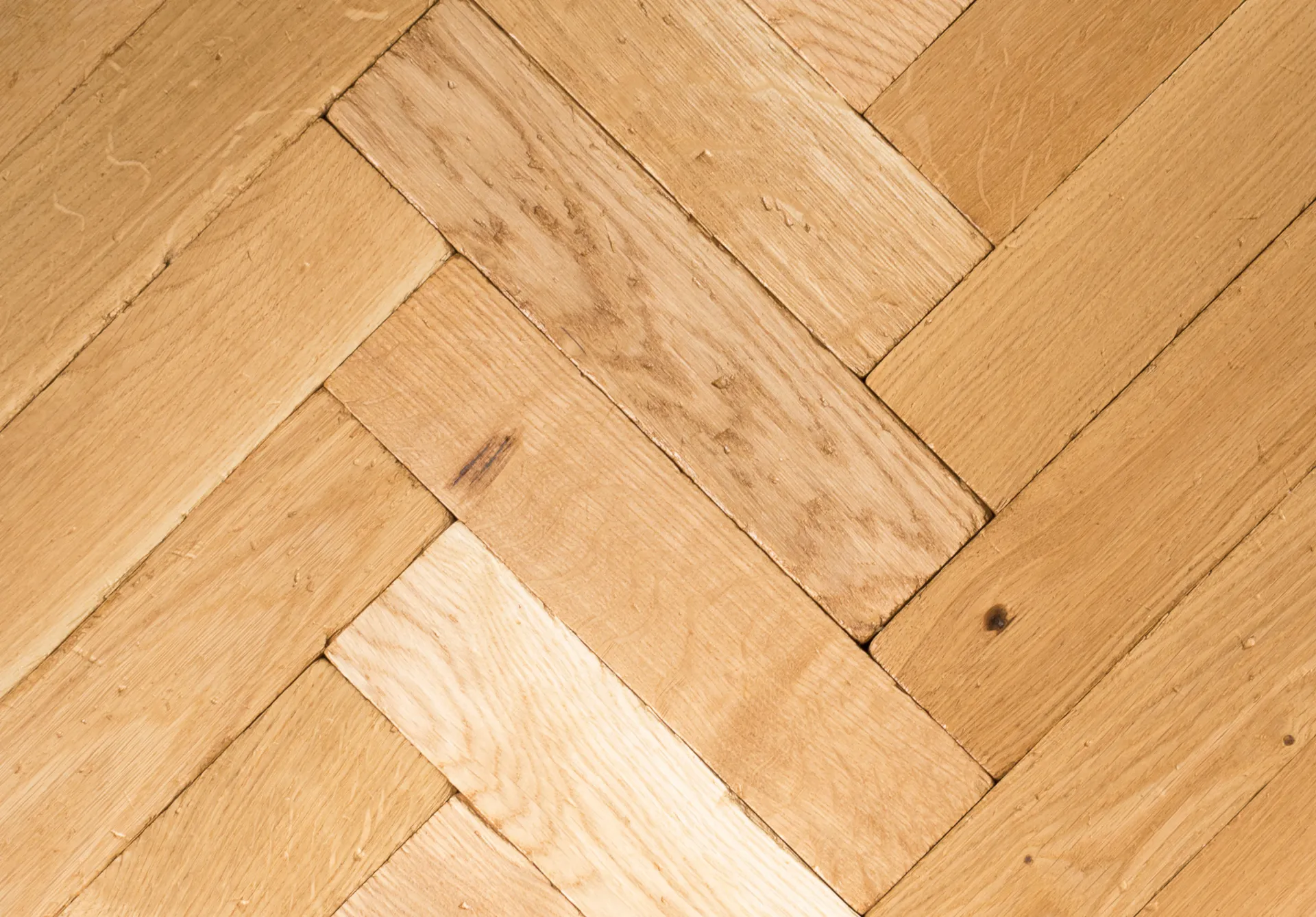 A neutral coloured parquet with shades varying from a pale oak to darker amber tones.